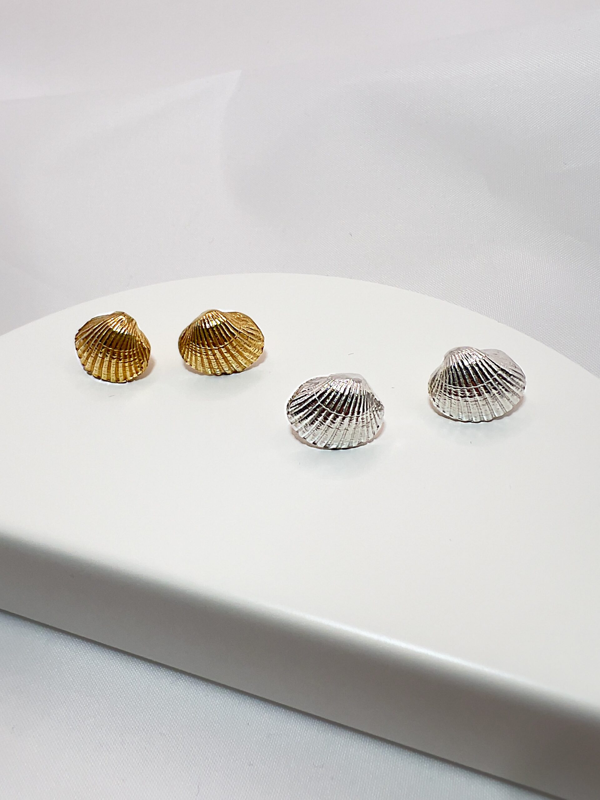 Kolczyki muszle powstały z odlewu prawdziwych muszli zebranych przeze mnie nad Bałtykiem. Jestem zdania, że nie ma potrzeby poprawiania natury. Dlatego zamiast tworzyć wzór inspirowany muszlami chciałam, abyś mogła mieć część Bałtyku i natury zawsze przy sobie.